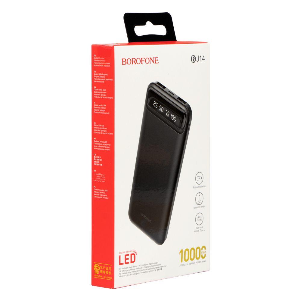 BOROFONE BJ14 Freeway, power bank 10000mAh, Micro-USB / USB-C 5V / 2A input, dual USB 5V / 2A output, LED indicator.
