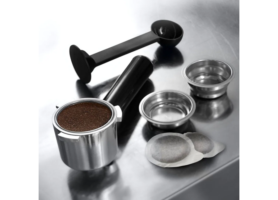 მოდელი ECP31.21 ბრენდი DeLonghi სიმძლავრე - 1100W წნევა - 15 ბარი წყლის რეზერვუარის მოცულობა - 1ლ ფუნქციები: ავტომატური გათიშვა ორი ულუფის ერთდროულად მომზადება ცხელი წყლის ჩამოსხმა ჩაისთვის ჭიქების შეთბობა ფერი: შავი წონა: 4 კგ