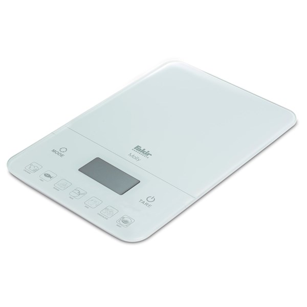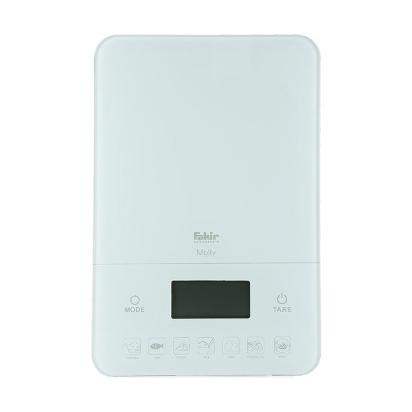 ბრენდი: Fakir მოდელი: Molly ფერი: თეთრი სახეობა: ელექტრონული ეკრანი: LCD წონის ერთეული: გრამი (g); ფუნტი (lb) მილიგრამი (Ml) , უნცია (oz) ავტ/გათიშვა: კი მაქსიმალური წონა: 10 კგ