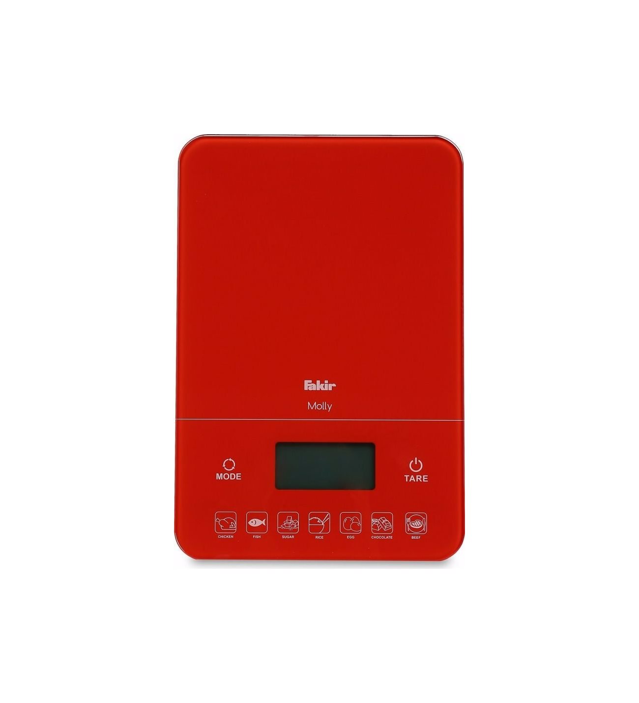 ბრენდი: Fakir მოდელი: Molly ფერი: წითელი სახეობა: ელექტრონული ეკრანი: LCD წონის ერთეული: გრამი (g); ფუნტი (lb) მილიგრამი (Ml) , უნცია (oz) ავტ/გათიშვა: კი მაქსიმალური წონა: 10 კგ