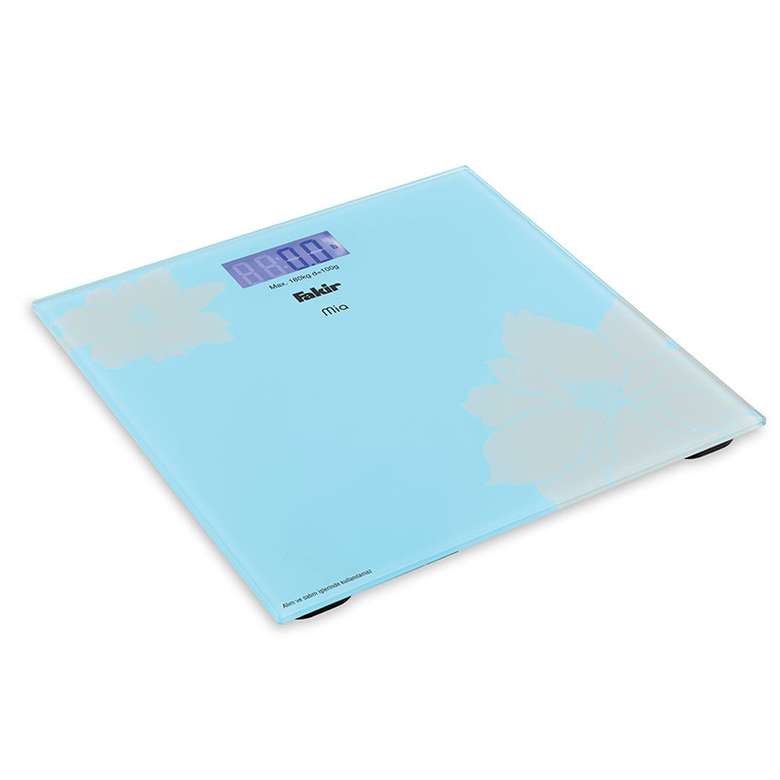 ბრენდი: FAKIR მოდელი: MIA- BLUE ტიპი: შუშის სასწორი 6 მმ სისქის მინის ზედაპირი LCD ეკრანი მაქს წონა: 180 კგ 100 გ სიზუსტით ავტომატური ჩართვა და გამორთვის ფუნქცია
