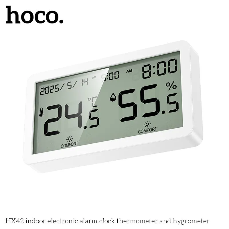 Hoco HX42 indoor electronic alarm clock thermometer and hygrometer White