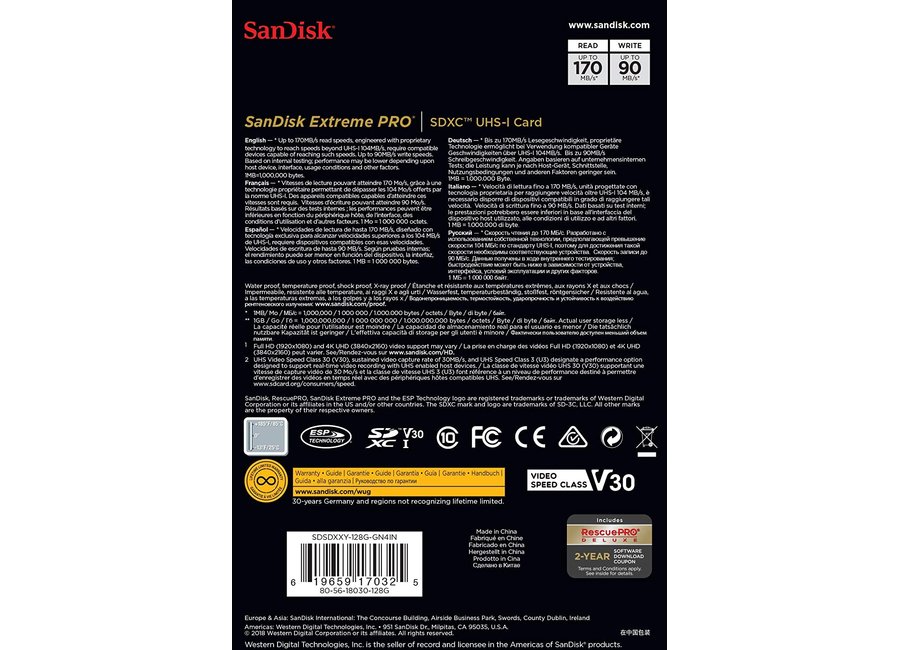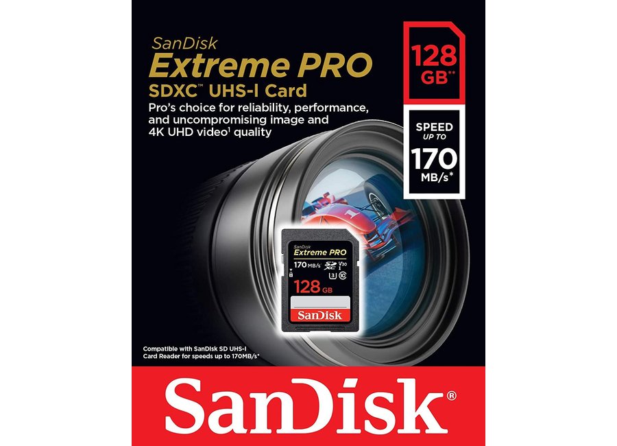SanDisk Extreme Pro SDXC Card 128GB - 170MB/s V30 UHS-I U3 (SDSDXXY-128G-GN4IN)