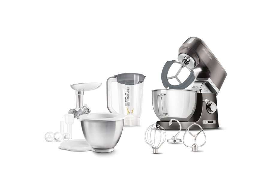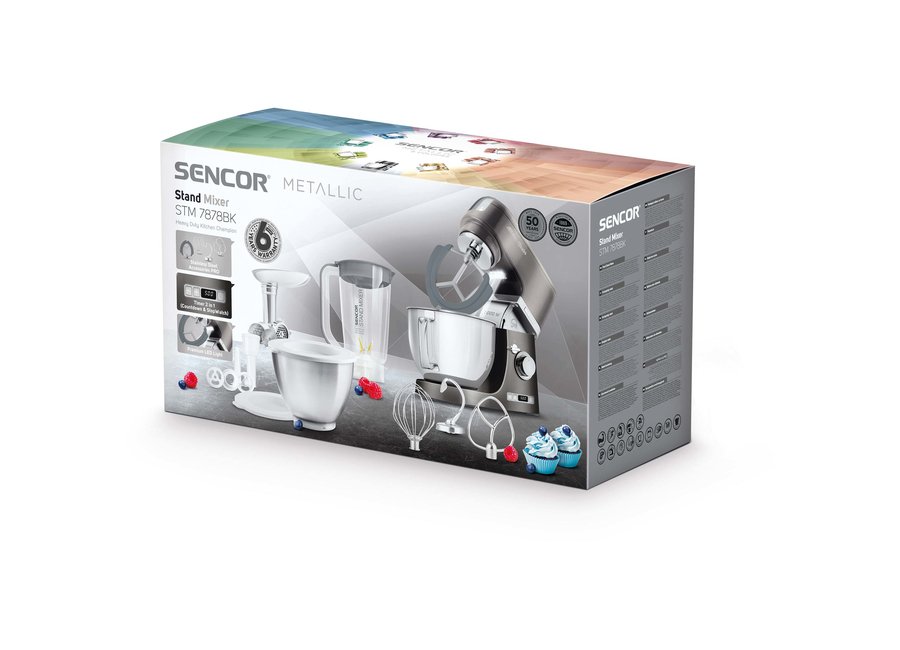 Sencor STM 7878BK Food processor, 4.5-litre stainless steel bowl, Extremely powerful 1,000W, 1.5-litre glass blending jug, 8 speed levels, Pulse funct