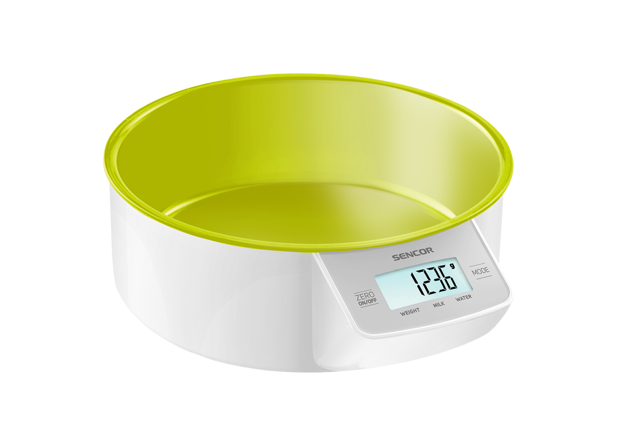 Sencor SKS 4004GR Kitchen Scale, Touch control sensors, Practical removable bowl (volume 1000 ml), Weight up to 5 kg (sensitivity 1 g), 2x 1.5 V AAA