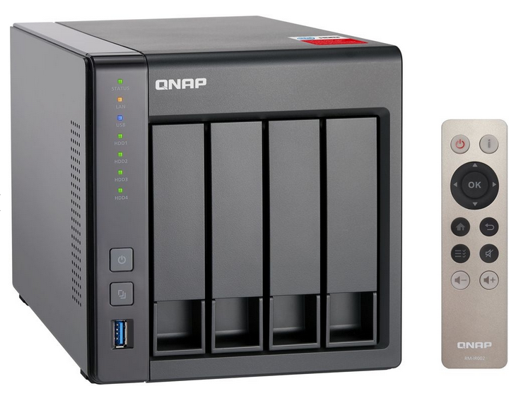 Qnap TS-451+-2G High-performance Intel quad-core NAS supporting HDMI, transcoding, and virtualization for homes and businesses: 4-Bay NAS, Intel Celeron Quad-Core 2.0GHz (up to 2.42GHz), 2GB DDR3L RAM (max 8GB), SATA 6Gb/s, 2 x GbE, hardware transcoding, HDMI out with kodi, remote control included, Virtualization Station, Surveillance Station (max 40 Ch), max 1 UX-800P/500P expansion unit