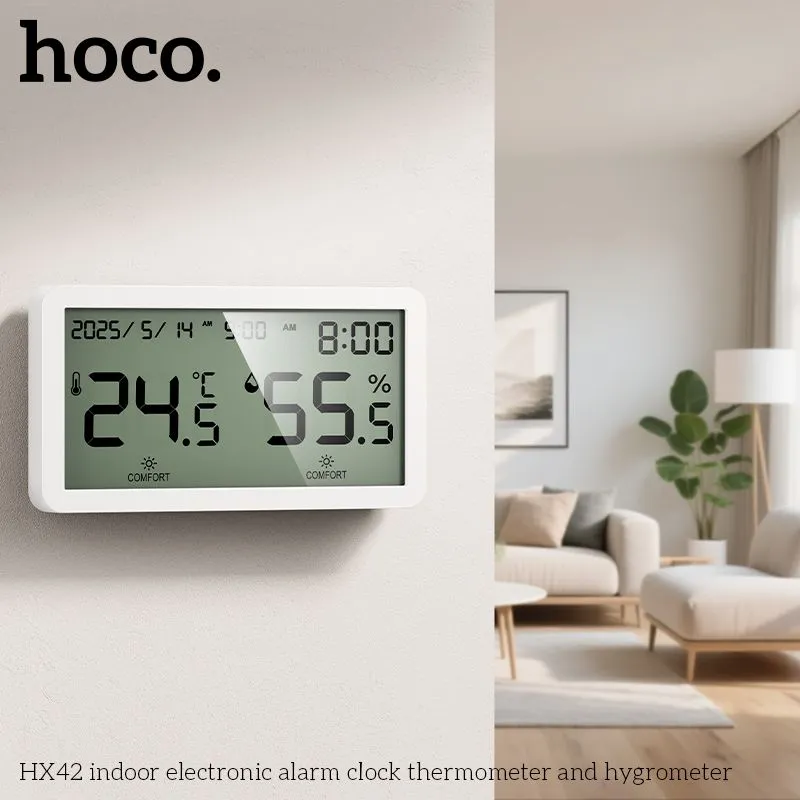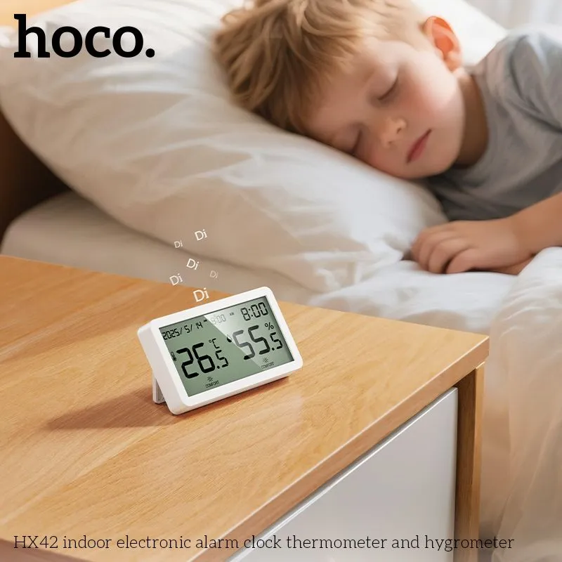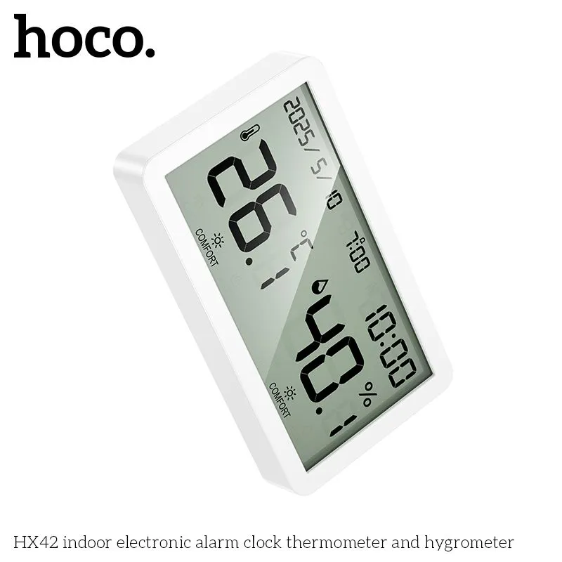 Hoco HX42 indoor electronic alarm clock thermometer and hygrometer White