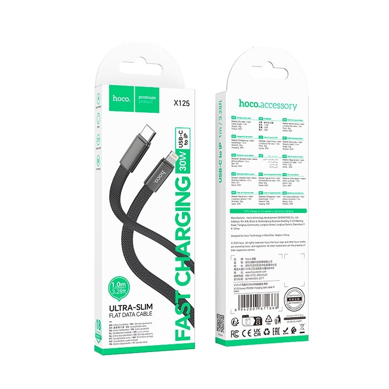 Specifications: Length: 1 m Connector: USB-C to Lightning Power: 30 W Current: 20 V / 3 A Data transmission: up to 480 Mb/s Material: PVC Weight: 25 g